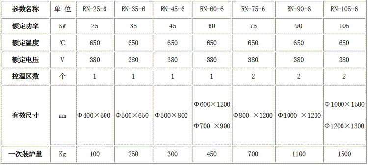 RN系列氮化爐規格表