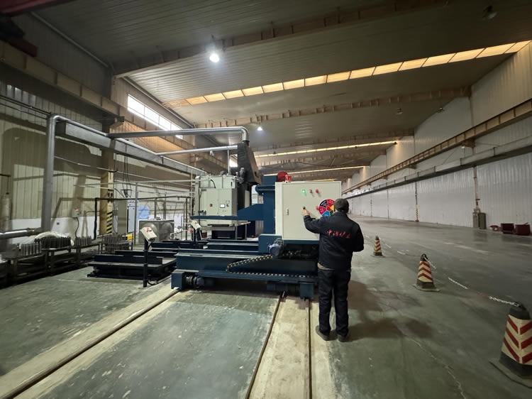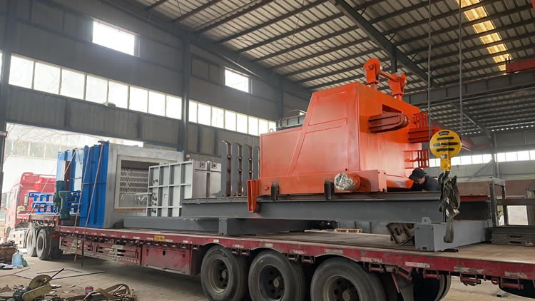 4、回火裝爐:瀝水完成后——料筐轉移到回火爐爐口——爐門開啟——中轉車把工件送入回火爐膛——中轉車自動退出——爐門關閉——裝爐工作完成。