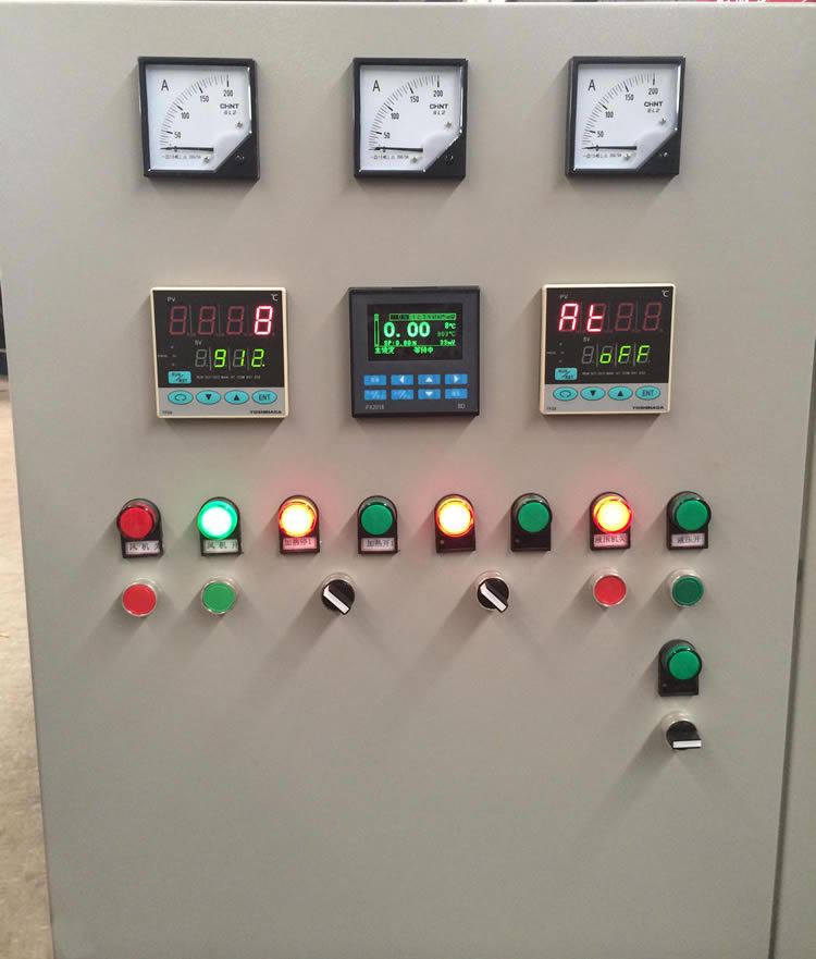 1、控溫儀表采用廈門宇電AI518AP-G-L1智能程序控制儀表,精度0.3級,控溫偏可達±2℃。人機界面采用深圳W EINVIEW威綸7吋觸摸屏,通過通信協議與智能儀表相連,把儀表操作菜單在觸摸屏**展開,這樣操作更真觀,更方便,在不更改儀表參數時,觸摸屏顯示電爐各區的工作狀態。(用戶可以有選擇性的采用)