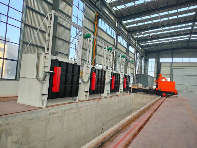3、出爐淬火:按動出爐按鈕——中轉車移動到淬火爐爐口——爐門開啟——中轉車把工件叉出爐膛——中轉車后退并下降進入淬火介質——中轉車帶動工件在水中左右擺動(次數可調)——中轉車上升瀝水——淬火工作完成